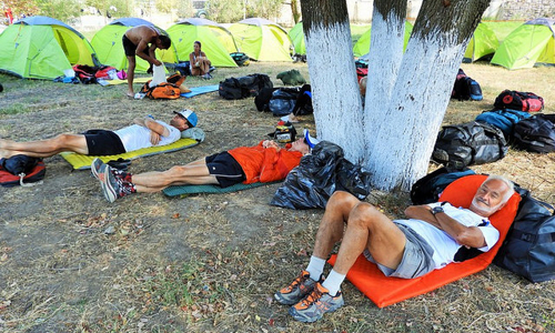L'organizzazione è stata all'altezza delle tue aspettative? - L'organizzazione della "Albania: The Hidden Treasure" è stata migliore del previsto. GlobalLimits è gestita da Stefan, un tedesco, quindi tutto è stato molto efficiente, dall'iscrizione iniziale ai resoconti e alle foto dopo la gara. Stefan è molto rilassato riguardo alla gara stessa: uno può fermarsi a bere una lattina di Coca Cola lungo il percorso o utilizzare i social media la sera. Se non puoi correre una tappa, a causa di un infortunio o perché non ti senti bene, non c'è da vergognarsi: puoi riprendere la gara il giorno successivo, anche se alla fine non sarai piazzato in classifica. Gli accampamenti notturni disponevano di tende, acqua calda, assistenza medica, servizi igienici ed elettricità per ricaricare i telefoni. C'era uno spazio in comune designato per il pranzo e questo, insieme alla disposizione delle tende, incoraggiava tutti a sentirsi inclusi ed a chiacchierare: ho avuto modo di conoscere tutti i concorrenti e la socializzazione e le successive amicizie sono state un vantaggio inaspettato di questa avventura. Ognuno aveva a disposizione non più di dieci chili di effetti personali, trasportati da accampamento ad accampamento, il che può sembrare spartano, ma in realtà era piuttosto generoso: in effetti, la maggior parte dei corridori ha terminato la gara avanzando pasti e spuntini. Il personale era eccellente e permettetemi una menzione speciale per l'equipe medica, la cui amministrazione, consigli e cure erano di prim'ordine. Sono stati selezionati per la loro esperienza di montagna ed alle alte temperature e non credo che avrei potuto essere assistito meglio.